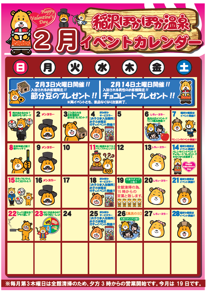 スタッフ一押しのイベントは、2月6日開催の風呂の日イベント